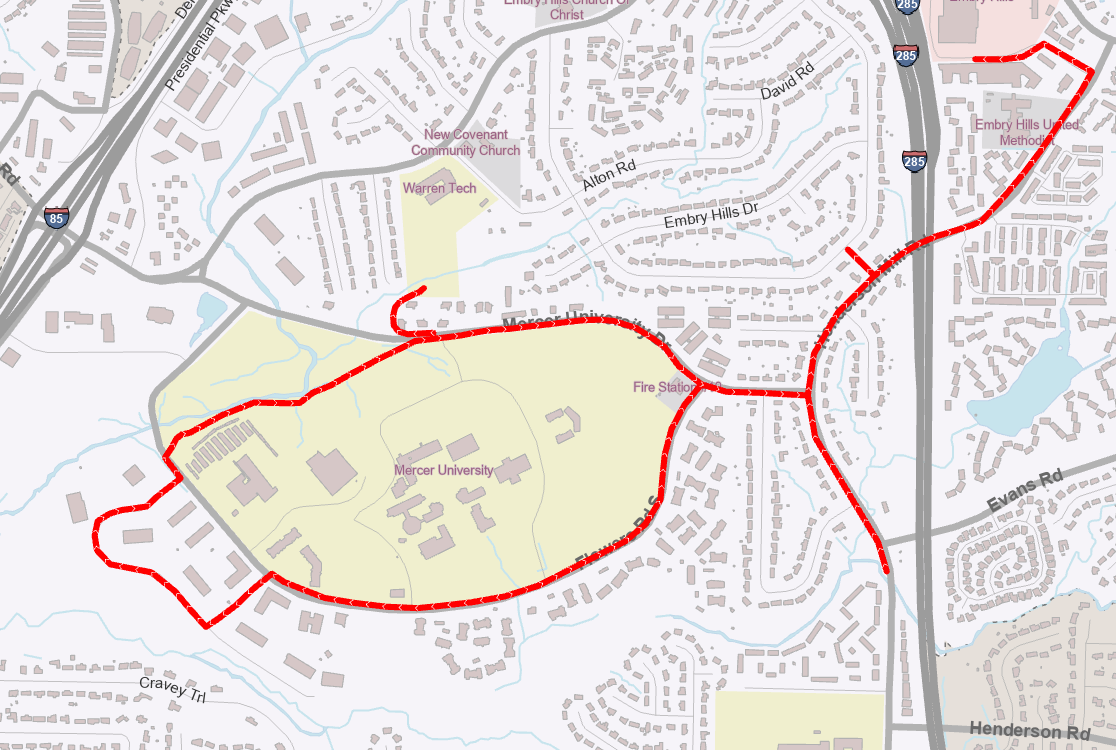 There already is a perfectly fine biking alternative that is not even being discussed – Flowers Road. This road is directly north of the creek, running parallel, and it goes from Henderson Mill to Mercer. It’s pretty, quiet, wide, and with plenty of room to create a bike path.